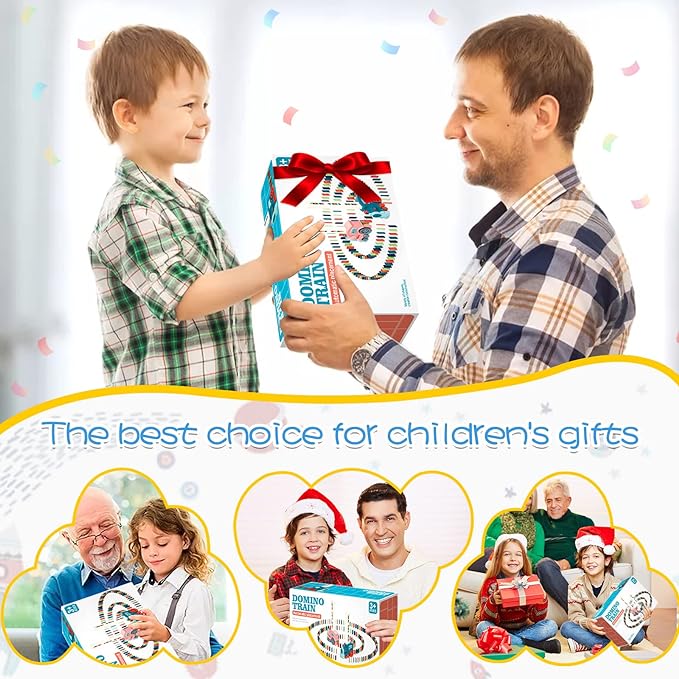 ✔ وضع الدومينو التلقائي (صور) – يقوم القطار الذي يعمل بالبطارية برص أحجار الدومينو في خط أنيق أثناء تحركه، مما يزيل متاعب الإعداد اليدوي.