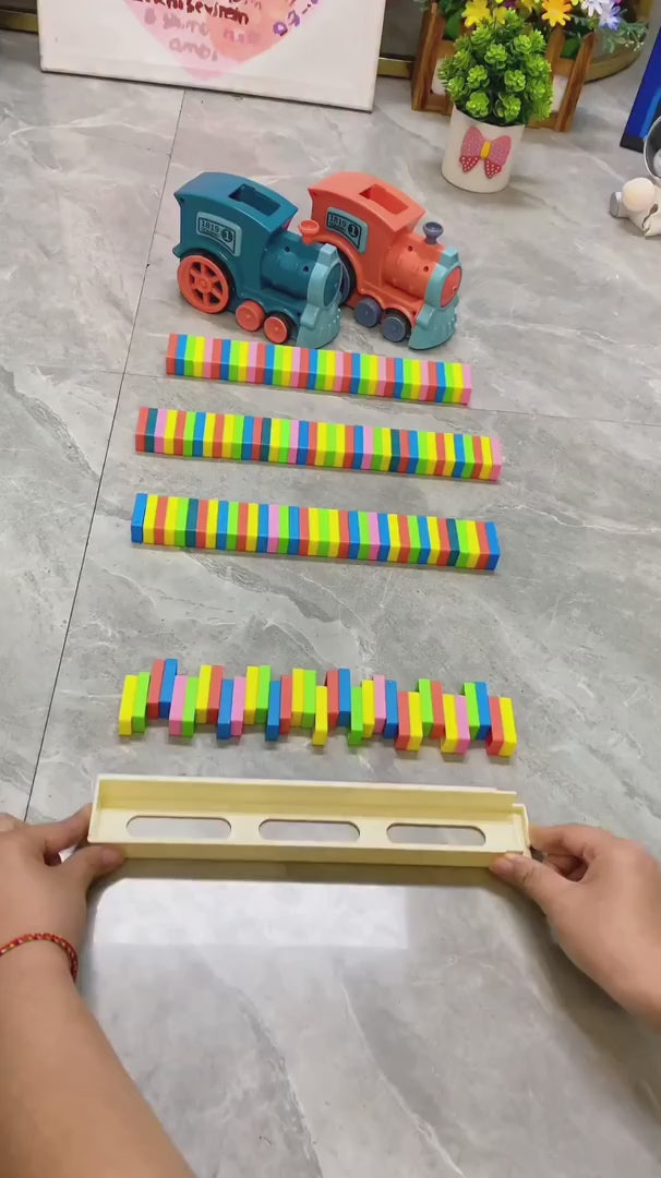 قطار لعبة ممتع وتعليمي ينشئ تلقائيًا قطع الدومينو الملونة أثناء تدحرجه، مما يشعل الإبداع والمهارات الحركية ويعزز الترابط بين الوالدين والطفل.