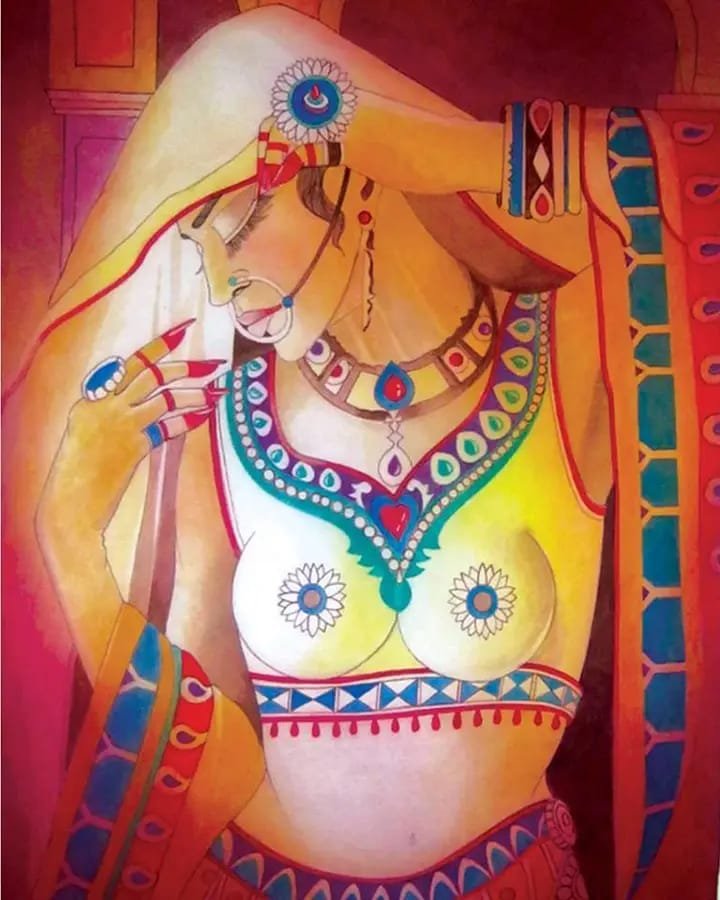 This painting is a testament to the artist’s mastery of watercolor technique. The delicate washes of color, the subtle blending of tones, and the precise details of the henna and jewelry all come together to create a truly stunning piece of art.