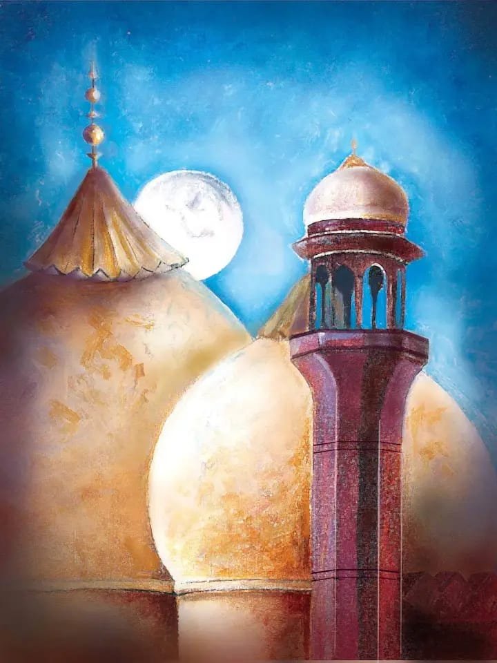 This captivating oil painting depicts a majestic mosque bathed in the soft glow of a full moon. The intricate details of the mosque’s architecture are highlighted by the moonlight, creating a sense of awe and wonder. The painting is rendered in a realistic style, with a focus on capturing the beauty and serenity of the scene.