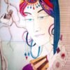 This vibrant and captivating painting transports you to a serene rural setting. A young woman, adorned in colorful traditional attire, is engrossed in a quiet moment of contemplation. The intricate details of her clothing, the intricate henna designs on her hands, and the gentle touch of the artist’s brushstrokes create a sense of tranquility and peace. The presence of a goat adds a touch of charm and innocence to the scene, while the bustling village background hints at a vibrant community. This artwork is a celebration of rural life, capturing the essence of a simple yet profound moment.