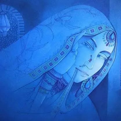 This captivating painting captures the essence of timeless beauty and mystery. The woman’s serene expression, adorned with intricate jewelry and a flowing veil, draws the viewer in. The artist’s skillful use of color and light creates a sense of depth and tranquility, inviting contemplation. The intricate details of the woman’s attire and the subtle play of light and shadow add to the overall allure of the painting. This artwork is a celebration of feminine beauty and a testament to the artist’s talent.