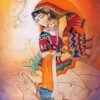 This captivating watercolor artwork titled “Sapphire Dreams” transports you to a realm of elegance and mystery. The painting portrays a woman of timeless beauty, her gaze lost in contemplation as she gazes into a mirror. Her flowing hair, adorned with intricate jewelry, cascades down her shoulders, creating a sense of movement and grace.