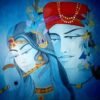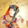 This captivating painting transports you to a world of mystery and intrigue. A veiled woman, with piercing eyes and intricate jewelry, peers out from behind a curtain. The delicate details of her attire, the vibrant colors, and the subtle play of light and shadow create a sense of intrigue and allure. The presence of a bird perched on a nearby branch adds a touch of nature and serenity to the scene. This artwork is a celebration of feminine beauty and the power of mystery.