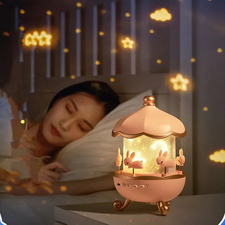 Whimsical Rotating Rabbit Carousel: Adding a touch of adorable charm, the built-in rotating carousel with cute rabbits offers a delightful visual element that captivates children and adults alike, making bedtime a joyful ritual.